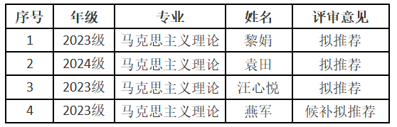 根据《yl23455永利集团学生资助资金管理办法(修订)》(长大校发[2025]112号)等文件精神,本着公开、公平、公正、择优的原则,我院认真组织了2025年研究生国家奖学金评选工作,经研究生本人申请、资格审查、现场答辩、学院研究生国家奖学金评审委员会审议,现将我院2025年研究生国家奖学金拟推荐名单公示如下: