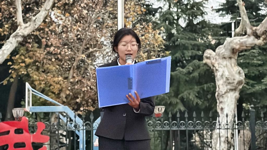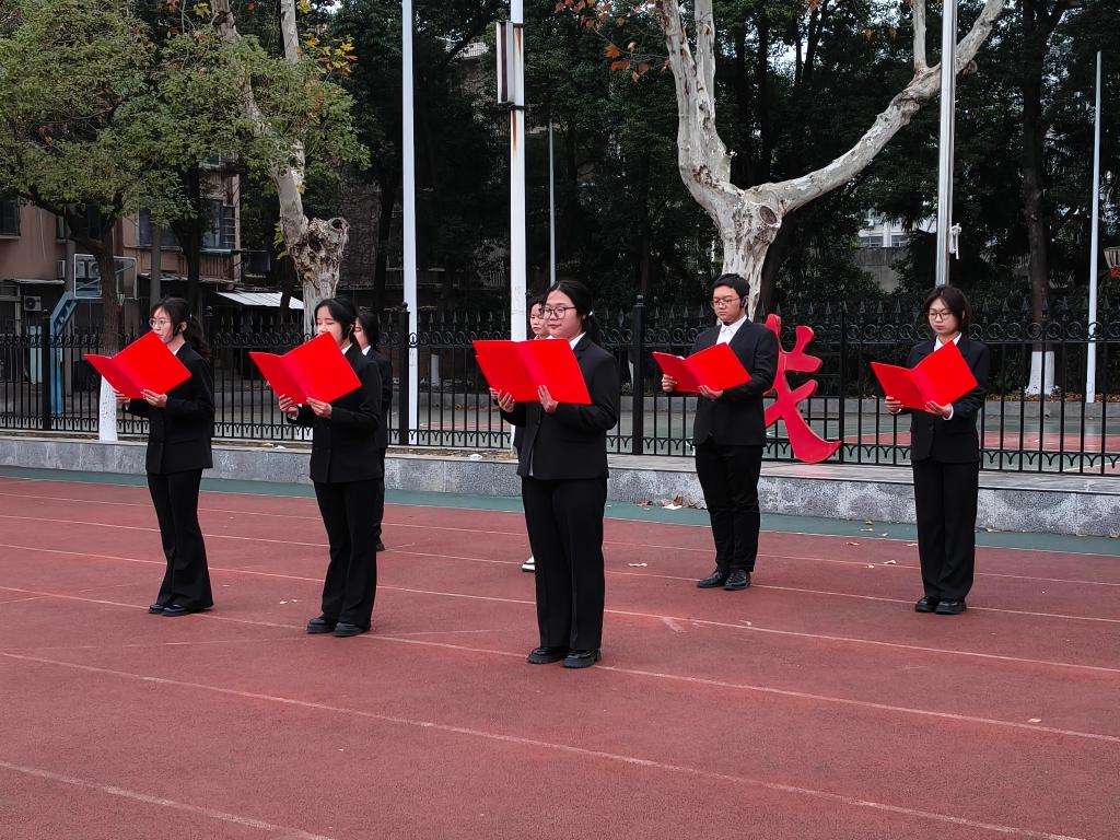 思政12401班夏丽娟同学发表国旗下的演讲。她号召同学们用信念校准奋斗航向,让家国情怀扎根心间;用勤学锻造奋斗基石,在知行合一中增长才干;用行动诠释奋斗价值,于平凡日常中贡献光热。