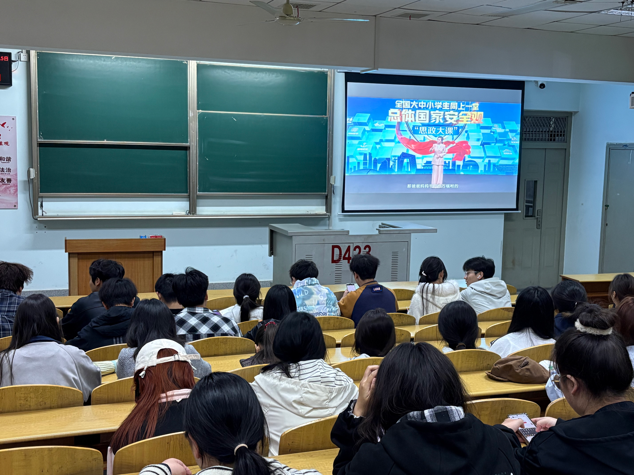 活动中,全体学生集中观看了教育部“千万师生同上一堂国家安全教育课”公开课。课程系统阐释了总体国家安全观的科学内涵与时代价值,并结合典型案例,深入浅出地讲解了政治安全、网络安全、生物安全等重点领域面临的现实挑战与应对策略,帮助同学们更加直观、深刻地认识当前国家安全形势的复杂性与严峻性。