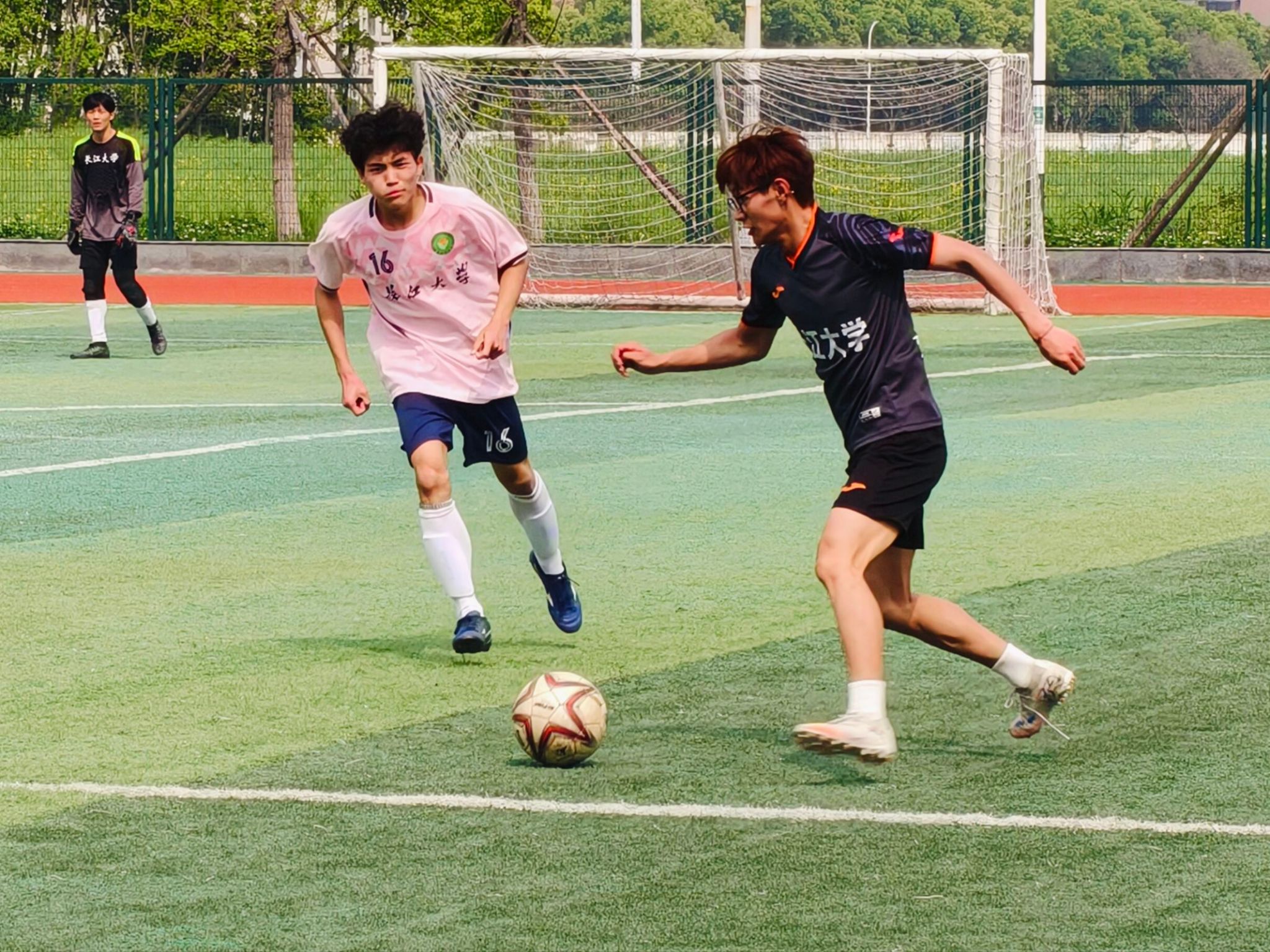 赛场上,马院球员身姿矫健、斗志昂扬,以默契配合、精准攻防尽显青春竞技风采。其中马院对阵电信学院的比赛尤为动人:虽阴雨连绵、场地湿滑泥泞,但球员们仍斗志昂扬。他们在雨幕中奋力奔跑、顽强拼抢,用无畏身影完美诠释了永不言弃的体育精神。其余场次中,球员们同样全力以赴,比分胶着时沉着防守,落后时全力反扑,进球时相拥庆祝。场边师生的呐喊助威声此起彼伏,充分展现了马院学子团结向上、奋勇争先的精神风貌。