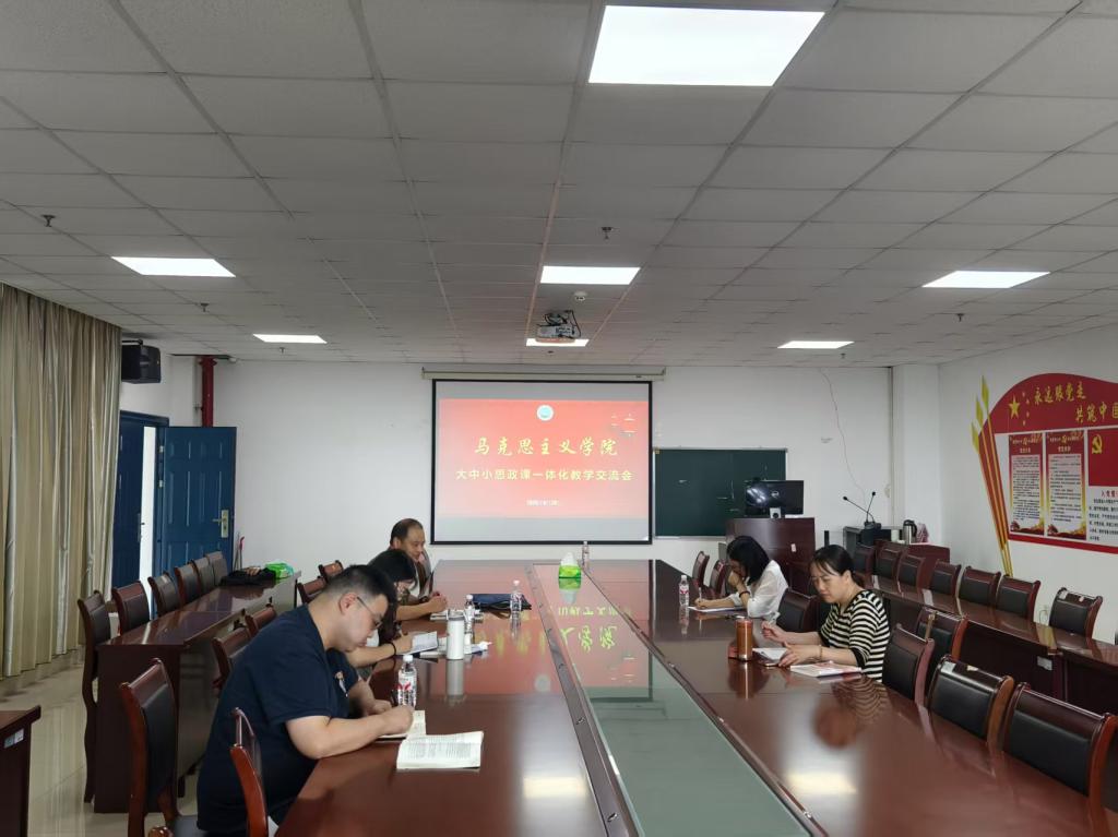 6月26日上午在文科楼1104会议室,荆州中学思政课教师王孝文老师莅临我院交流大中小思政课一体化。会议由我院分管教学的副院长张莉主持,各课程组负责人和教师代表参加交流。