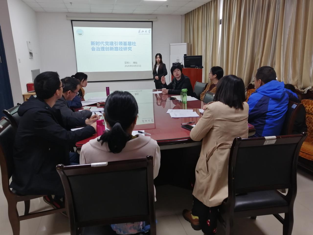 高晗、邹雅倩和曹明圆三位项目负责人依次对自己团队的项目进行了汇报答辩。老师们对三位同学的答辩进行了细致的点评,并提出了针对性的意见。大家一致认为高晗同学的答辩逻辑清晰,有较充足的实践经验支撑,但项目研究范围过大,建议可选取具有代表性的样本,如以荆州区为例,并进一步完善项目背景。邹雅倩同学的答辩细节丰富,项目研究对象极具典型性,老师们建议可进一步研究其创新性,聚焦乡村文化振兴的大背景。曹明圆同学答辩图文并茂,选题与指导老师研究方向高度吻合,并与现实紧密结合。但后疫情时代这一概念不好定义,老师们建议可选择更为明确的切入点。