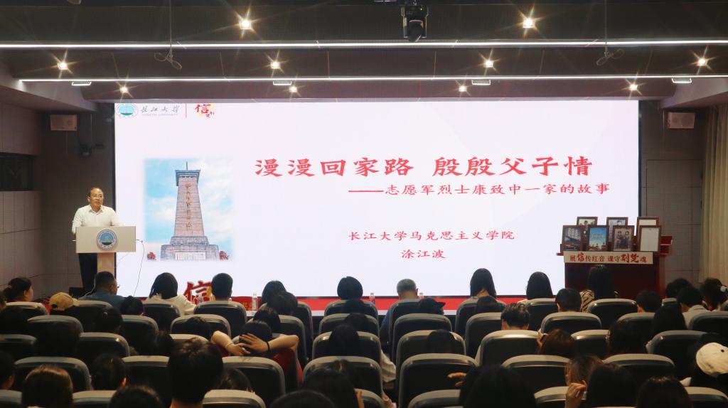 《信·荆楚》第五讲“漫漫回家路,殷殷父子情”由永利y23455副院长、《信·荆楚》课程组教师涂江波、永利y23455教师汤波兰、永利y23455学生蔡坤鹏联袂讲授。课程通过深情讲述、书信品读、视频播放等丰富的表现形式重新展现70多年前的多封抗美援朝烈士战地家书,引导在场师生一同走进那段浸染硝烟的岁月,感悟志愿军官兵为了祖国和民族的尊严而英勇无畏、舍生忘死、奉献一切的家国情怀。
