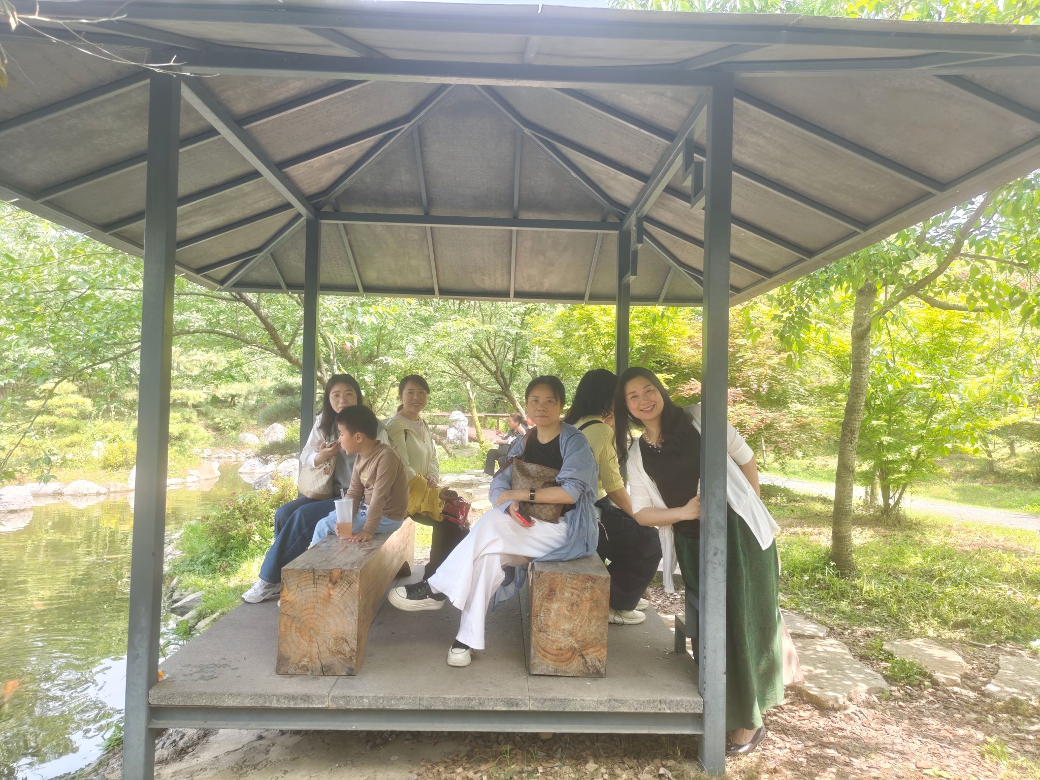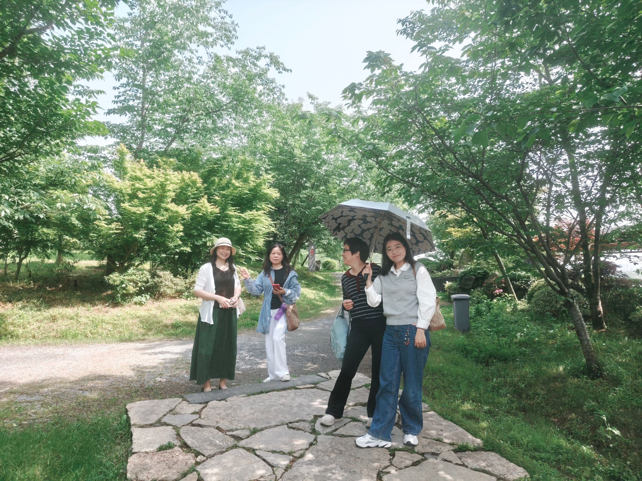 当日上午,教职工们集中乘车抵达此次春游的第一站——荆州区浅山森林美术园。该园坐落于荆州区八岭山镇朱家岭村,园内森林茂密,环境清幽宁静,宛如一处深藏于城市近郊的天然氧吧。虽然是暮春,但一进园,那满眼的绿色就把大家吸引住了。老师们三五成群,沿着林间小路慢慢逛,边走边聊,有说有笑。“这里光线好,快来合个影!”“来来来,我们这队也拍一张!”平时在讲台上严肃认真的老师们,这会儿都变成了“拍照达人”。大家自由组成各种小队伍,在公园的各个打卡点摆造型、拍美照,玩得不亦乐乎。有的老师还现场当起了“摄影师”,指挥大家调整站位,气氛十分欢乐。