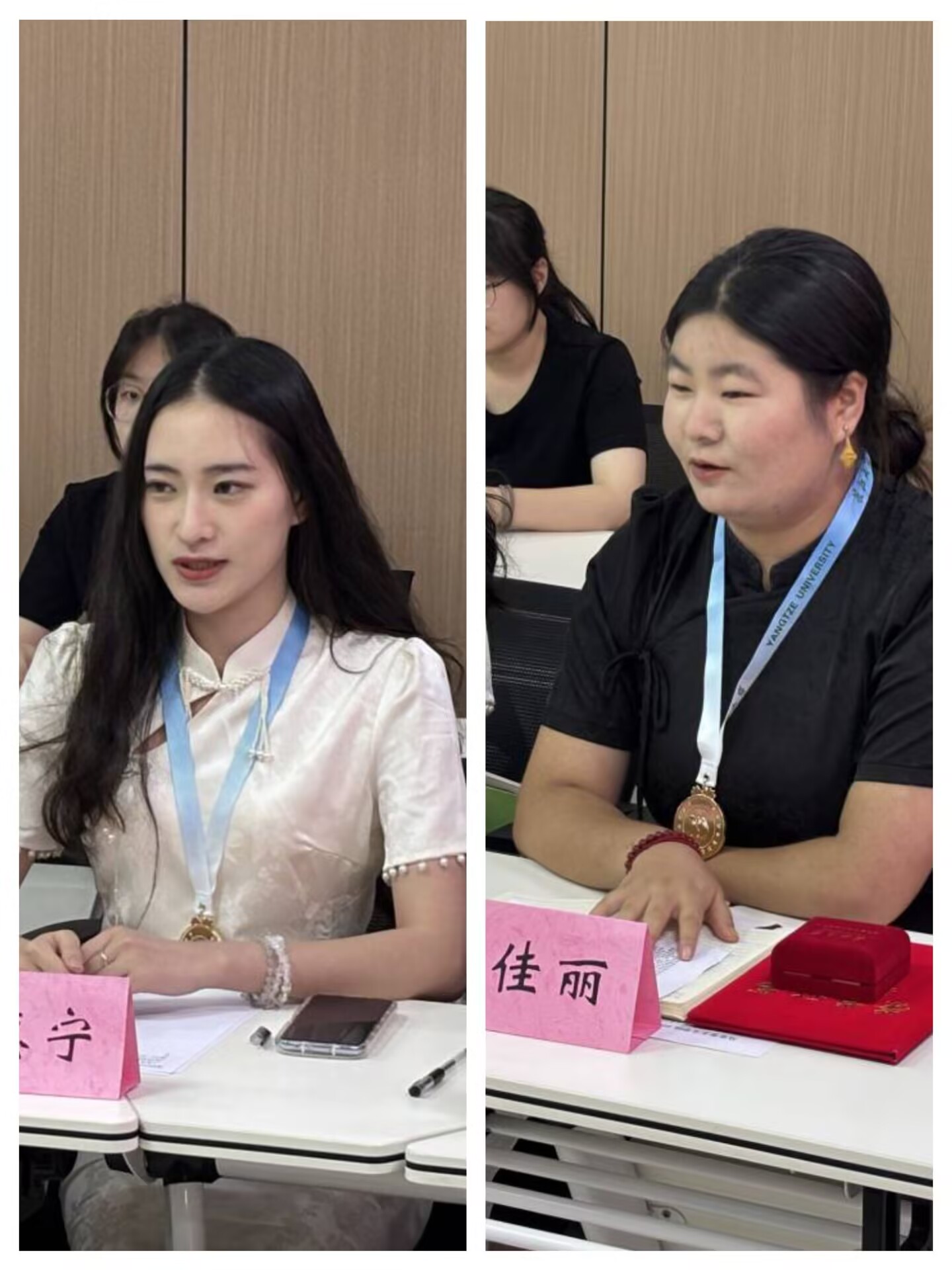 会上,姜学勤院长、刘小燕书记共同为西部就业、基层就业学生代表仇佳丽、许惠宁颁发“金骆驼纪念章”。围绕职业选择时的所思所想,毕业生们畅谈了感悟。许惠宁同学讲述了自己在校期间以学为主、全面发展,毕业时决心回到家乡广西,立志投身教育事业的心路历程;仇佳丽同学提到,在学习成长过程中,国家、社会和学校对她的关怀从未间断。作为一名学生党员,她将秉持全心全意为人民服务的宗旨,在基层岗位上贡献青春力量,以实际行动报效祖国。