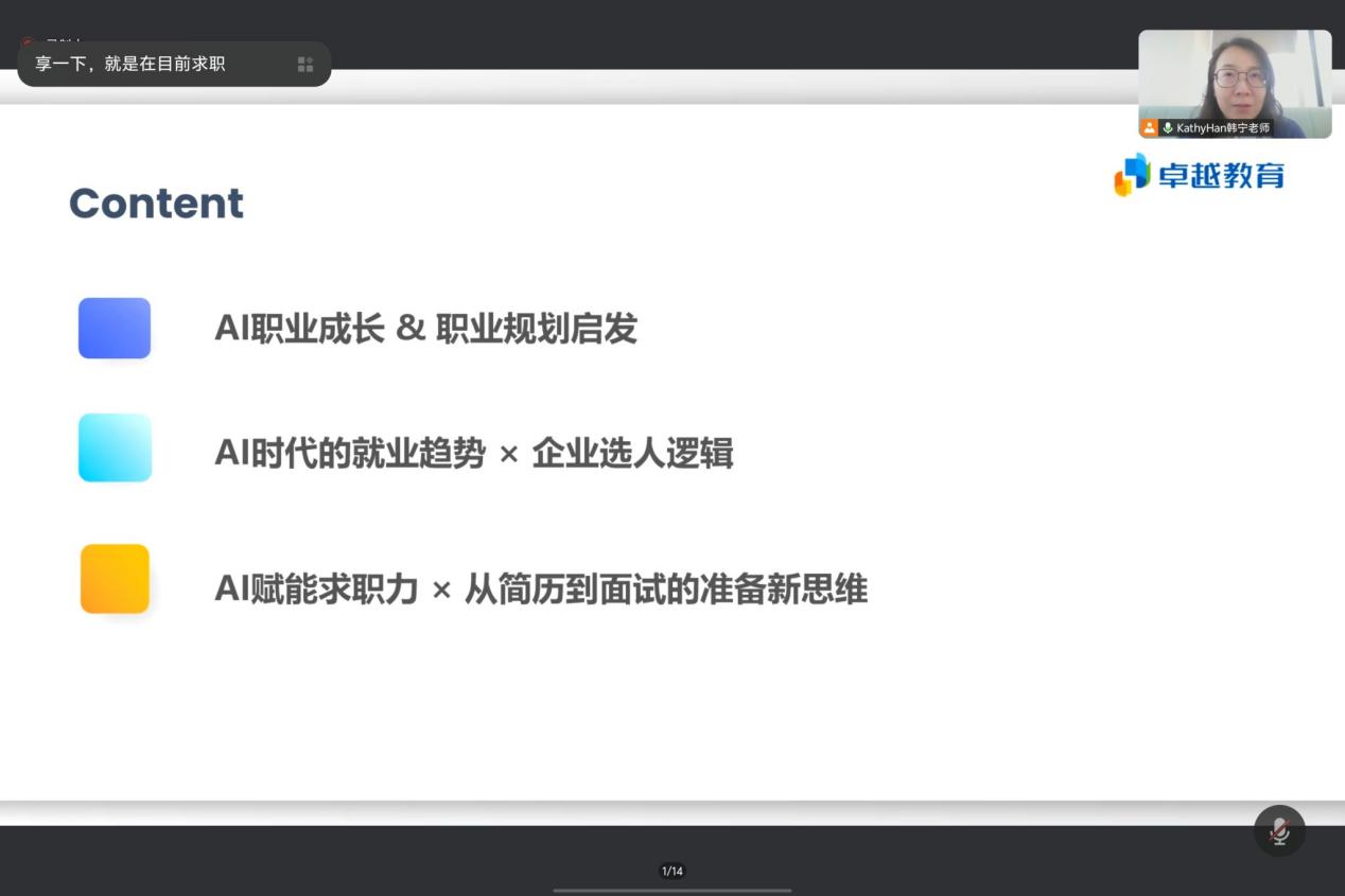 (通讯员 李欣怡)在AI技术飞速发展的当下,如何打造专属求职竞争力、做好职业规划?为深入推进供需对接就业育人,促进学生明确职业方向、提升核心竞争力,12月24日下午,永利y23455邀请卓越教育集团资深人力资源专家韩宁老师以“AI时代的求职力成长课——职业规划思维启航”为题开展了生涯规划与就业指导专题讲座,学院学工办主任张云雾以及本、研学生以线上方式参与了讲座。